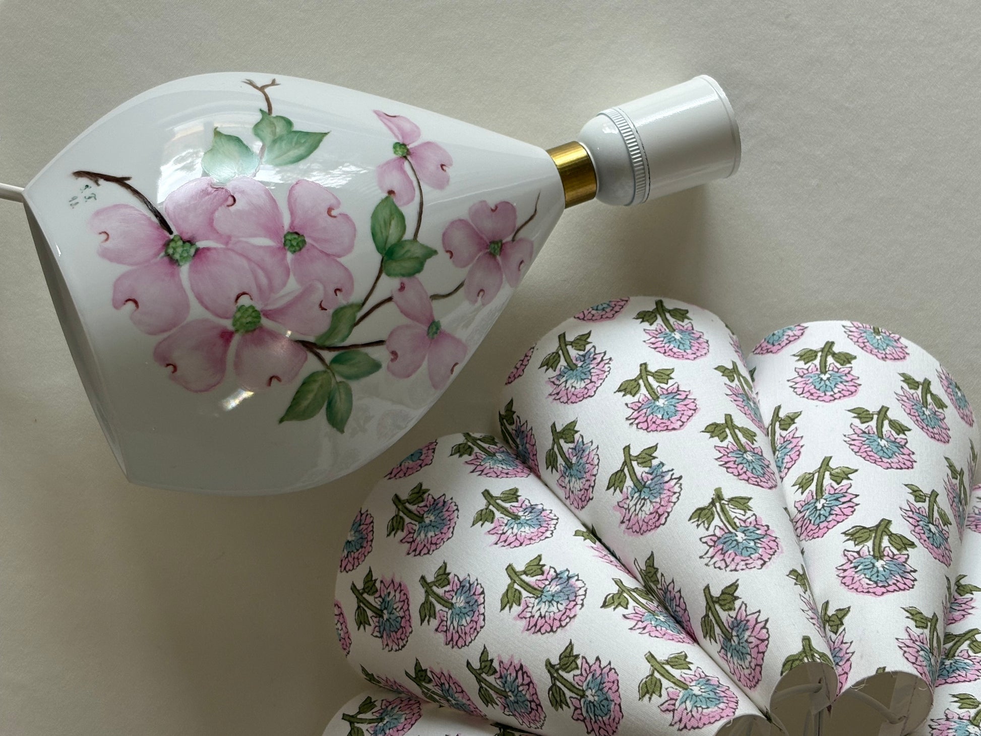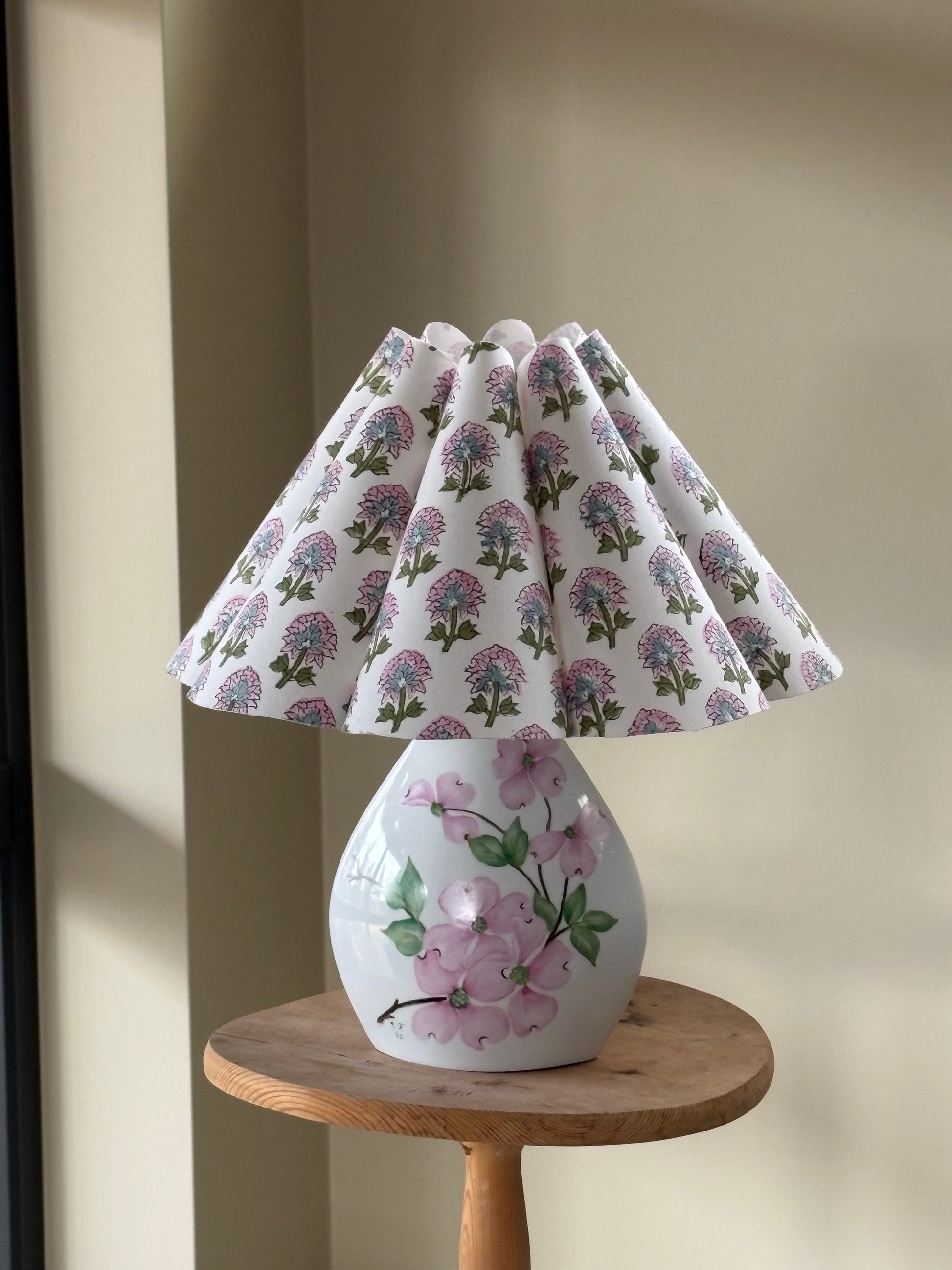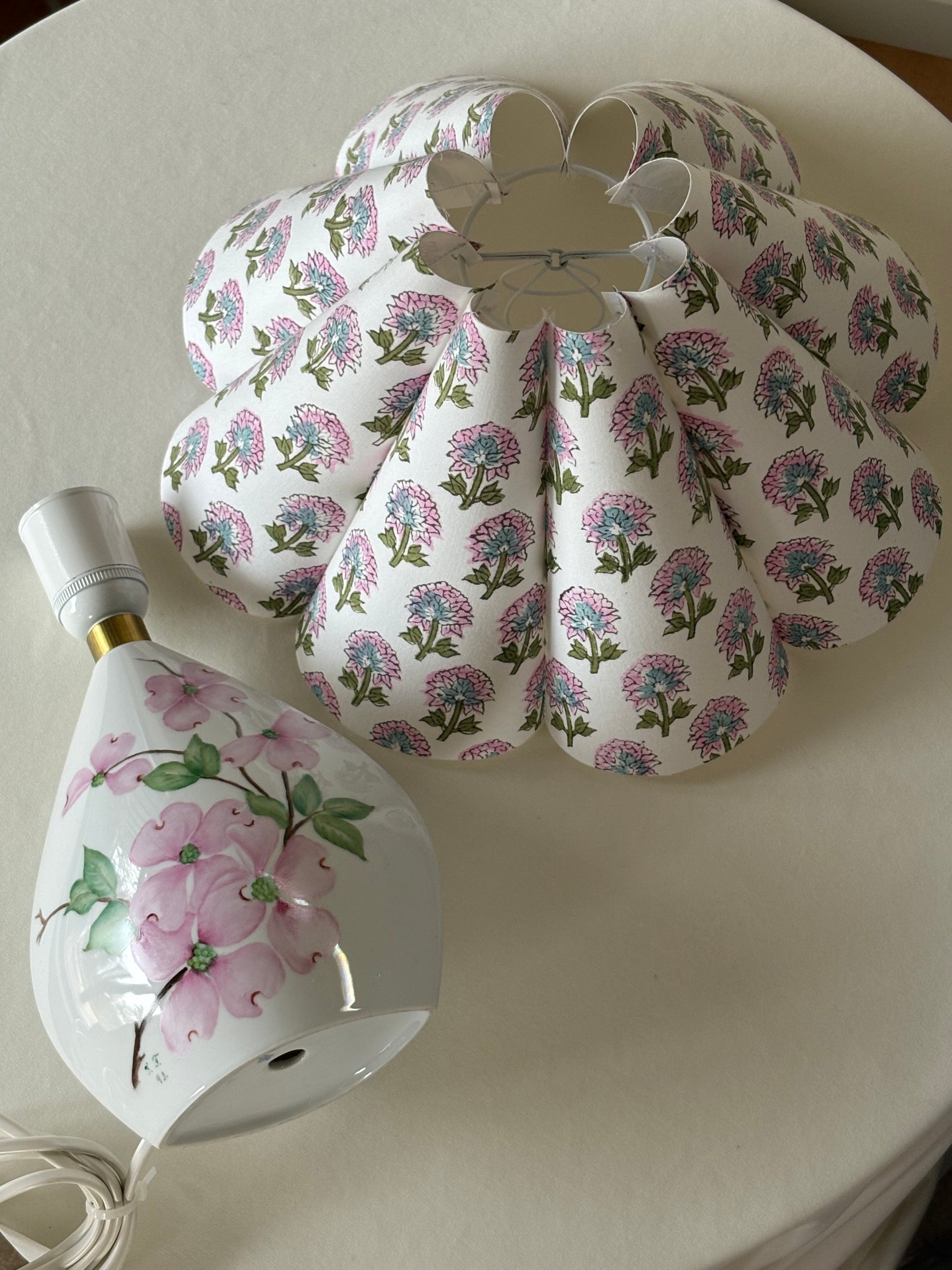 Jeg eeeeeelsker håndmalte porselenslamper! Og denne passet perfekt til siste rest av dette Studio Bazar stoffet. 🌸