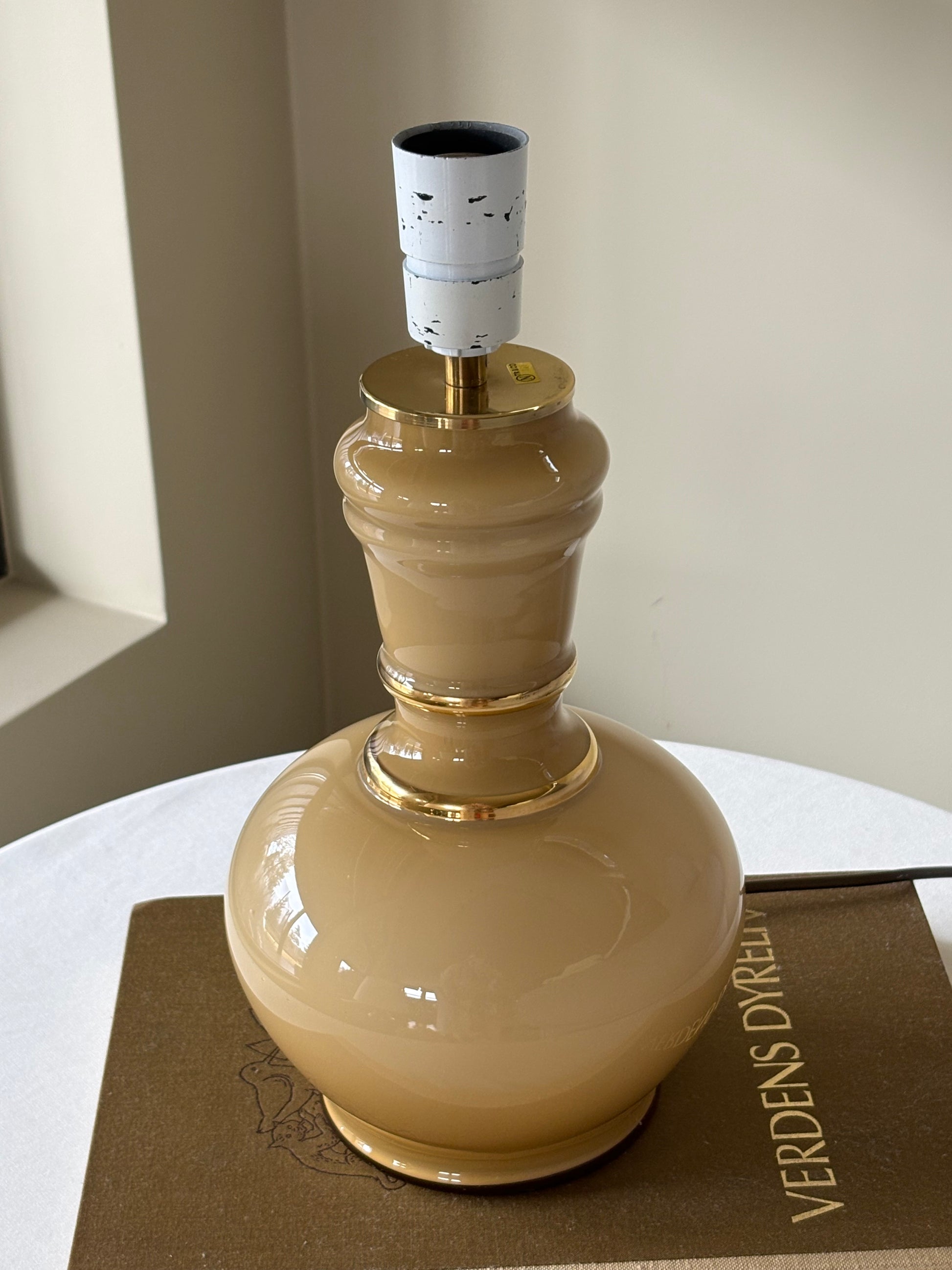 Lampen har fått nytt støpsel og en god vask. Sokkelen har kosmetisk slitasje, men lampen selges med 5 års garanti og pære.