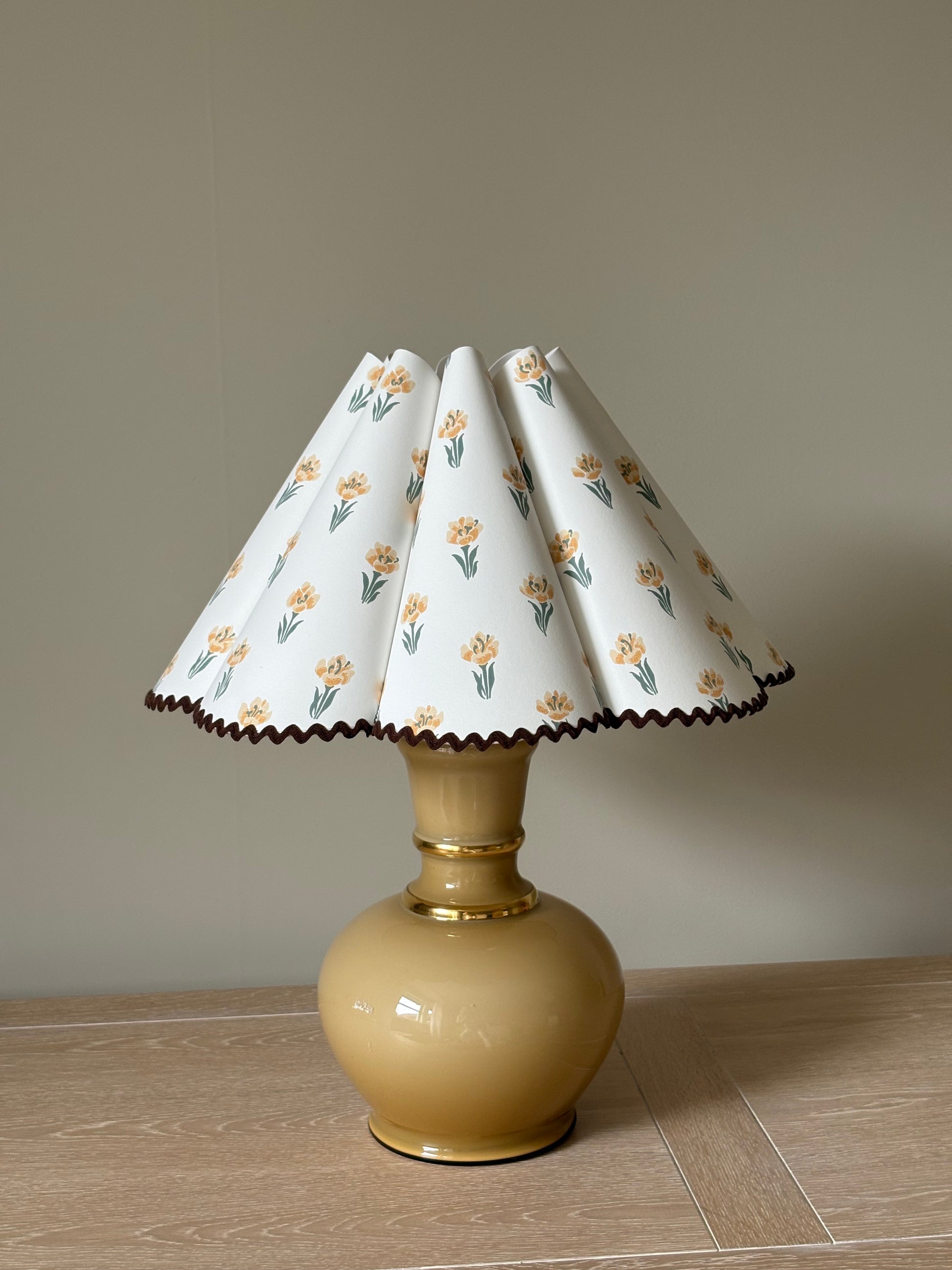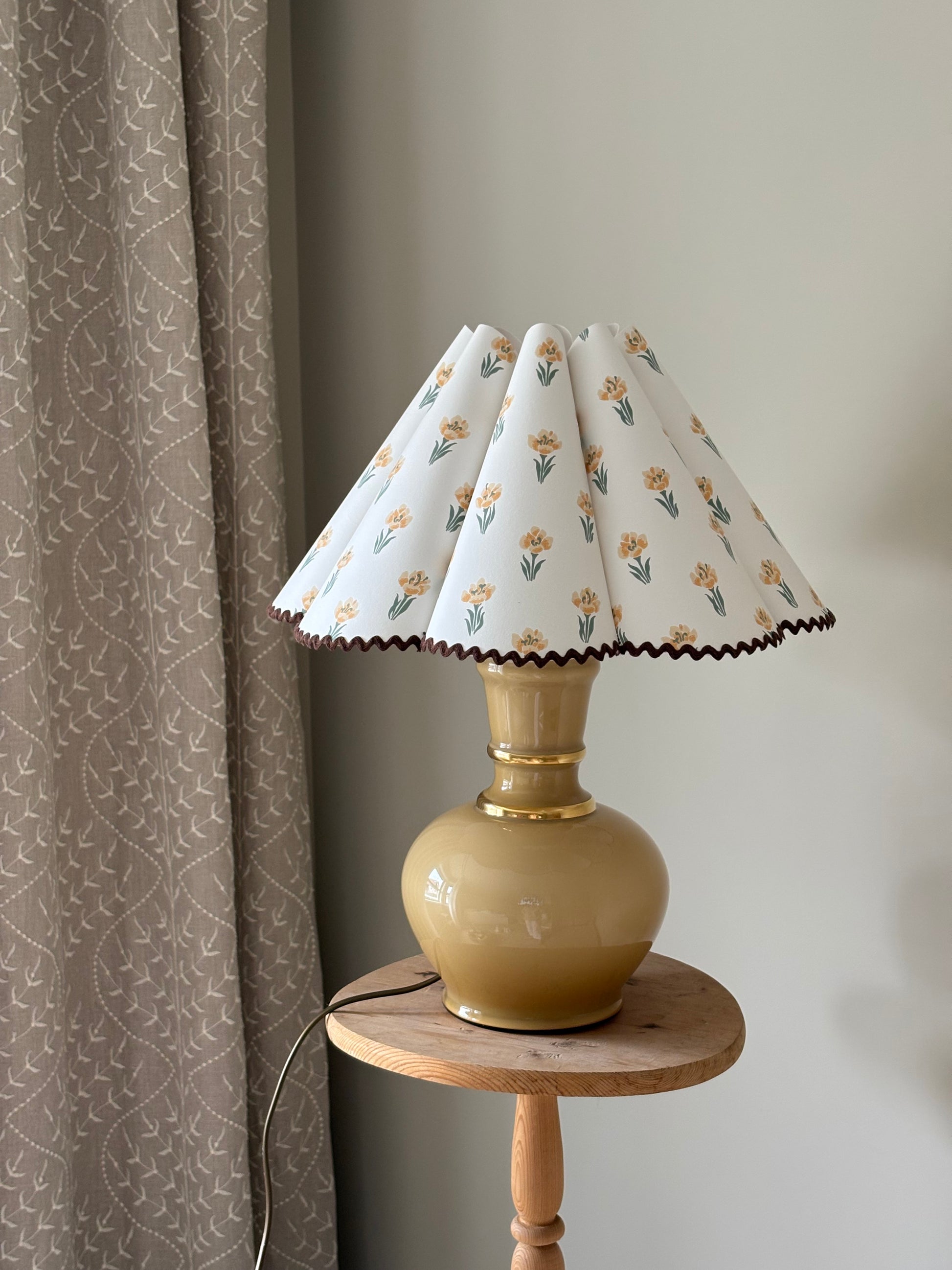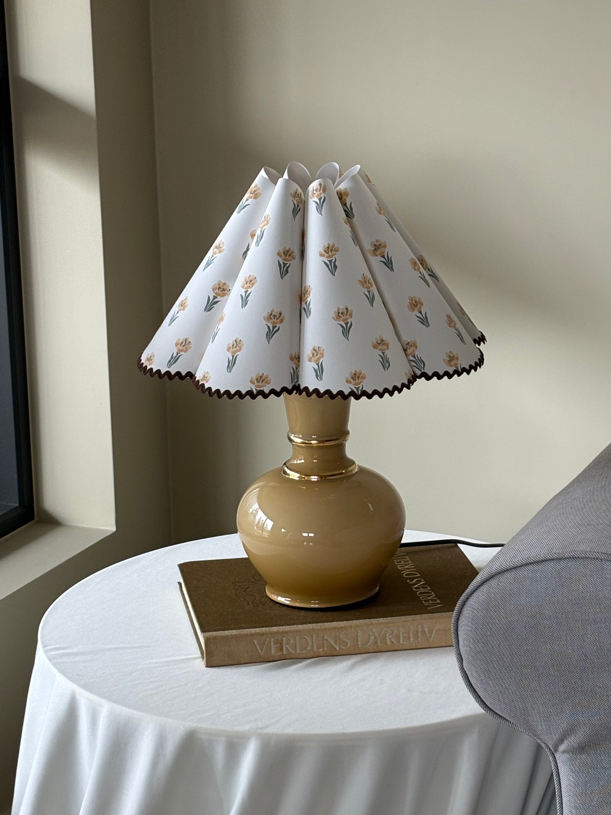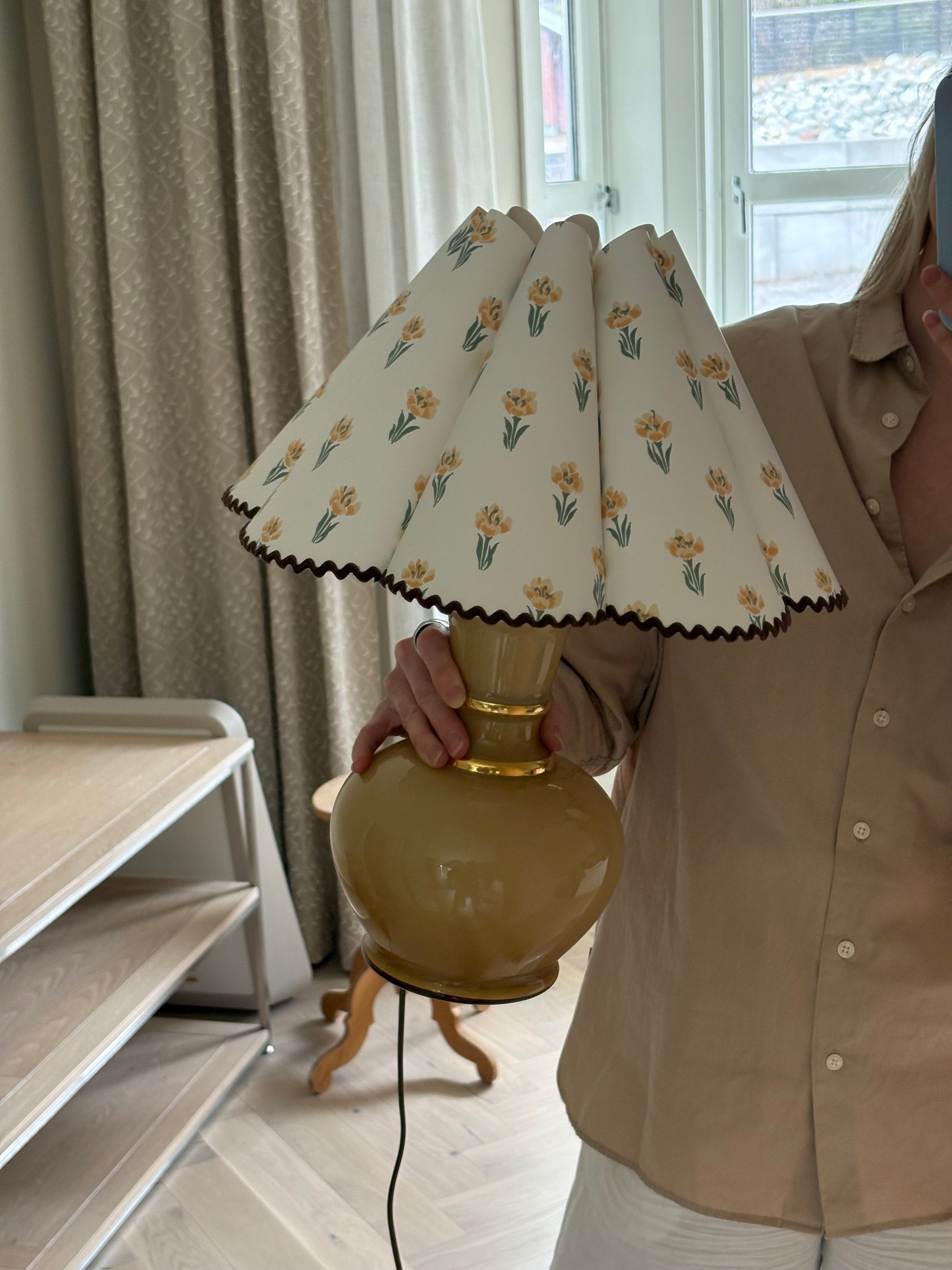 Skikkelig søt lampeskjerm med tapeten Betty fra Sandberg tapeter. Lampeskjermen kan ha ujevnheter da det er håndlaget. Stativet er er nytt fra en liten fabrikk i Danmark.