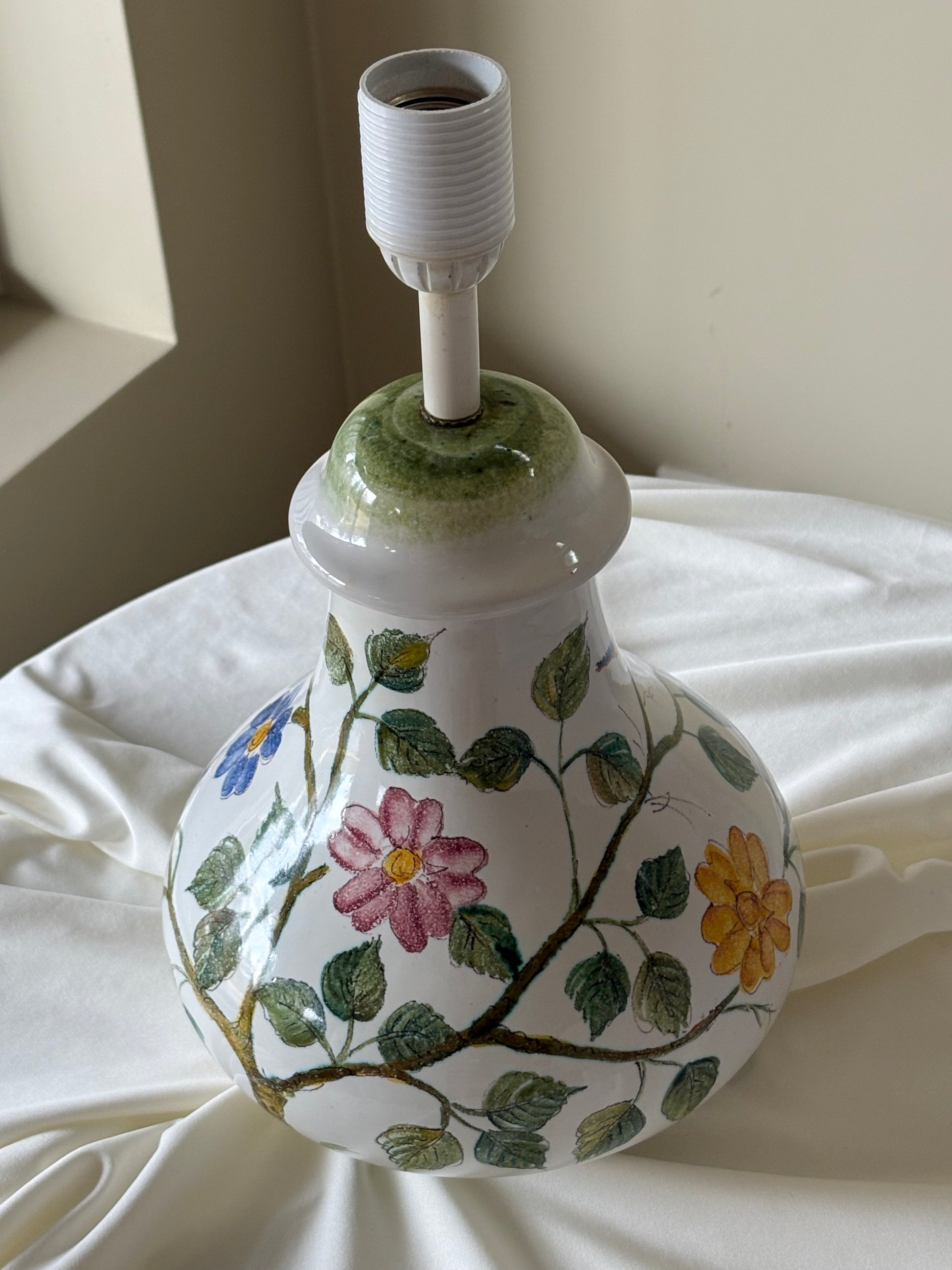 Jeg ELSKER alt som er håndmalt og har spor av mennesker i seg og denne porselenslampen fra et dødsbo var en del av en enorm keramikksamling fra 40-70-tallet.