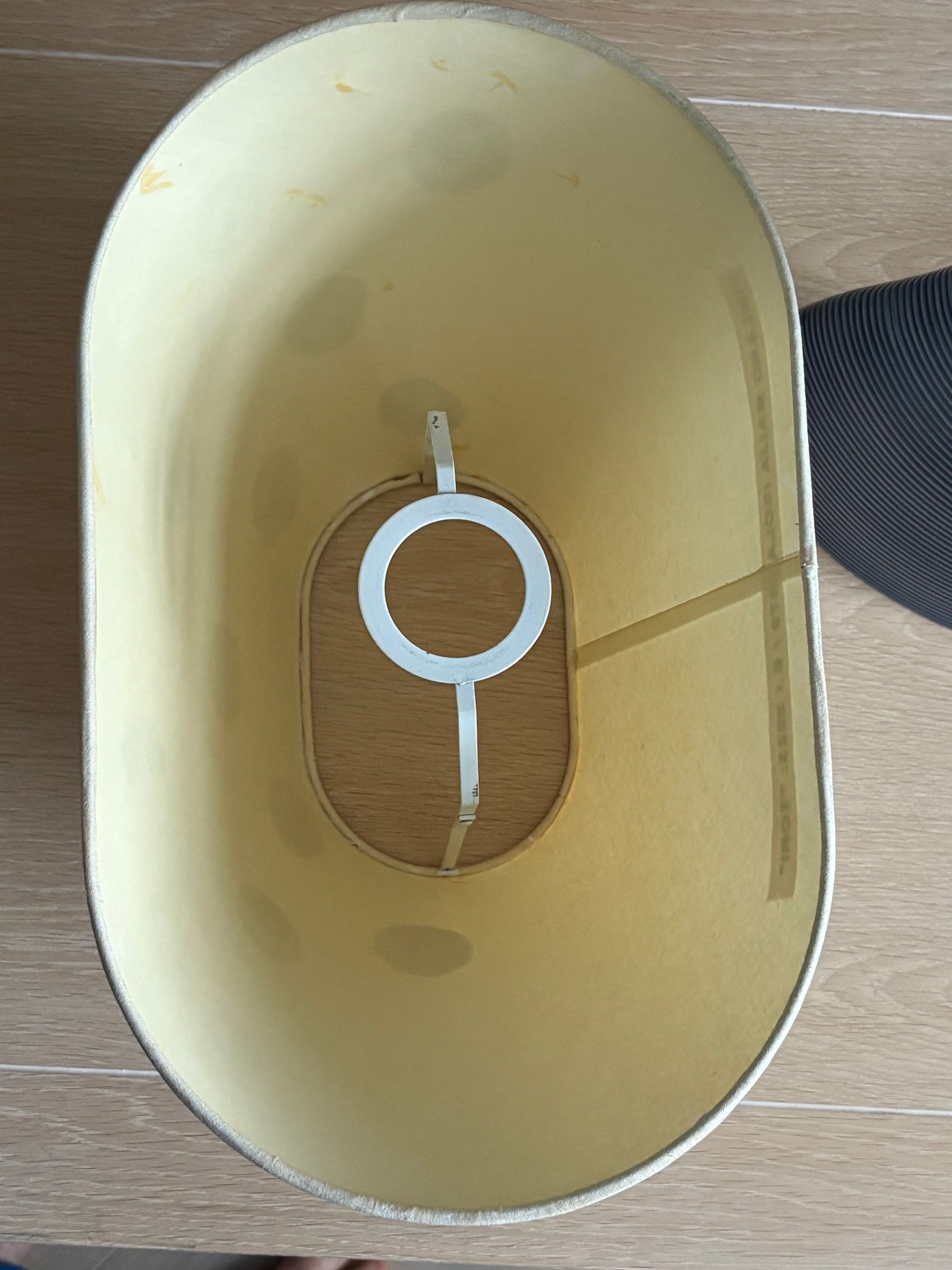 Lampeskjermen er gammel og har levd litt, men har en fantastisk fasong. Jeg synes den fortjener en kul spot hjemme hos noen.