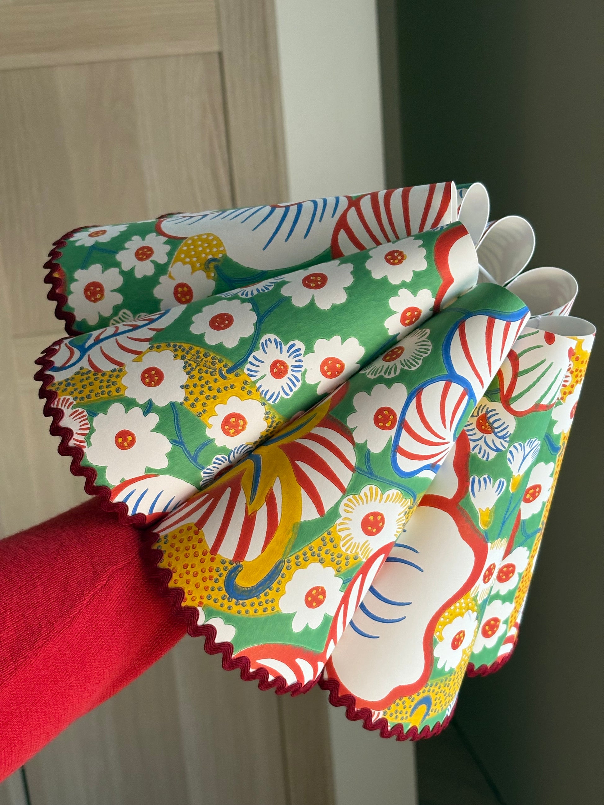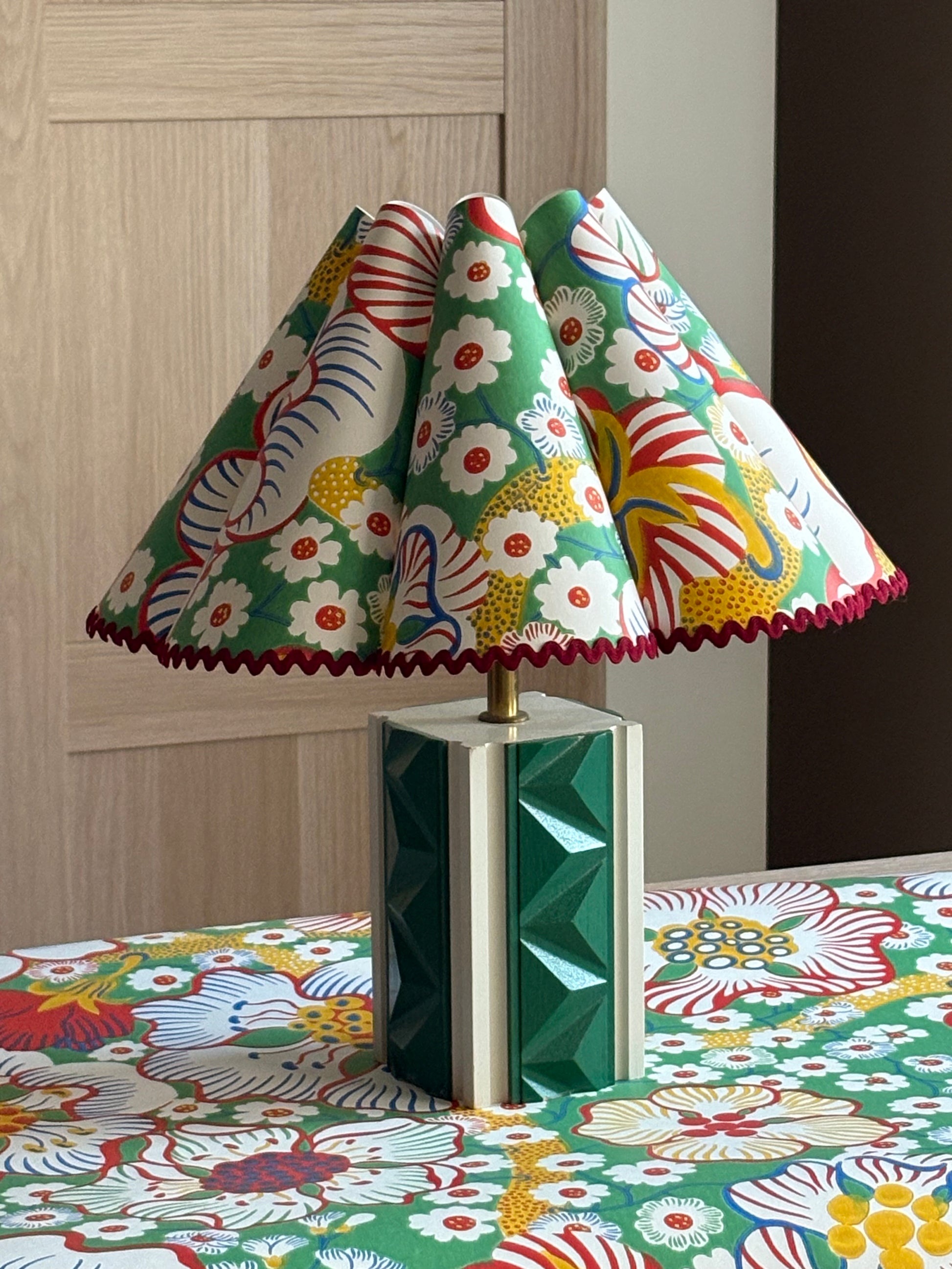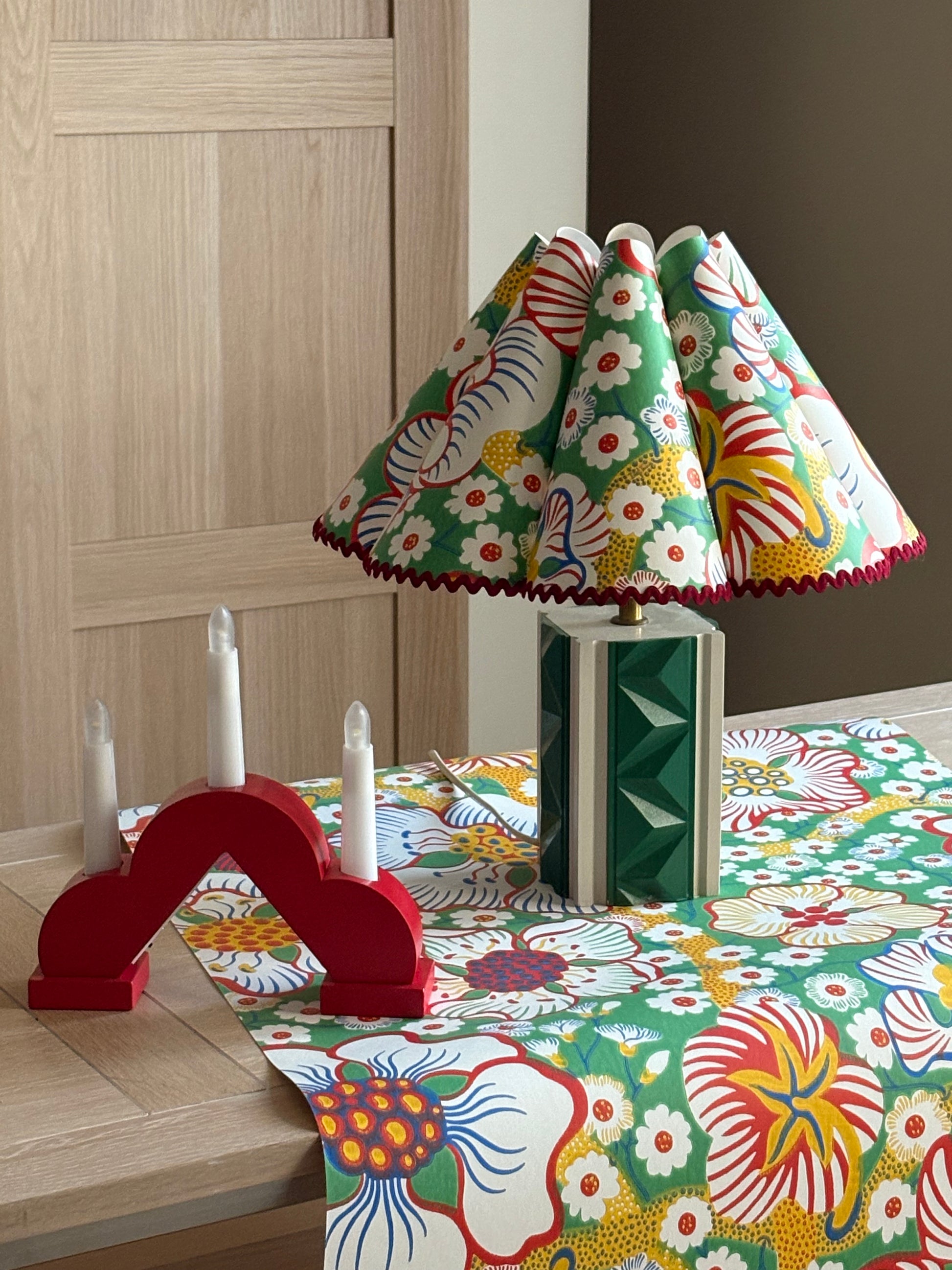 Vil du redde denne fantastiske lampen i malt tre (hvis ikke gjør jeg det..)? Denne lampen minner om noe svensk folkeaktig – akkurat passe whimsical og passer perfekt på barnerom eller i stuen. 💚 Den har nye elektriske deler og en skjerm med Svenskt Tenn tapet.