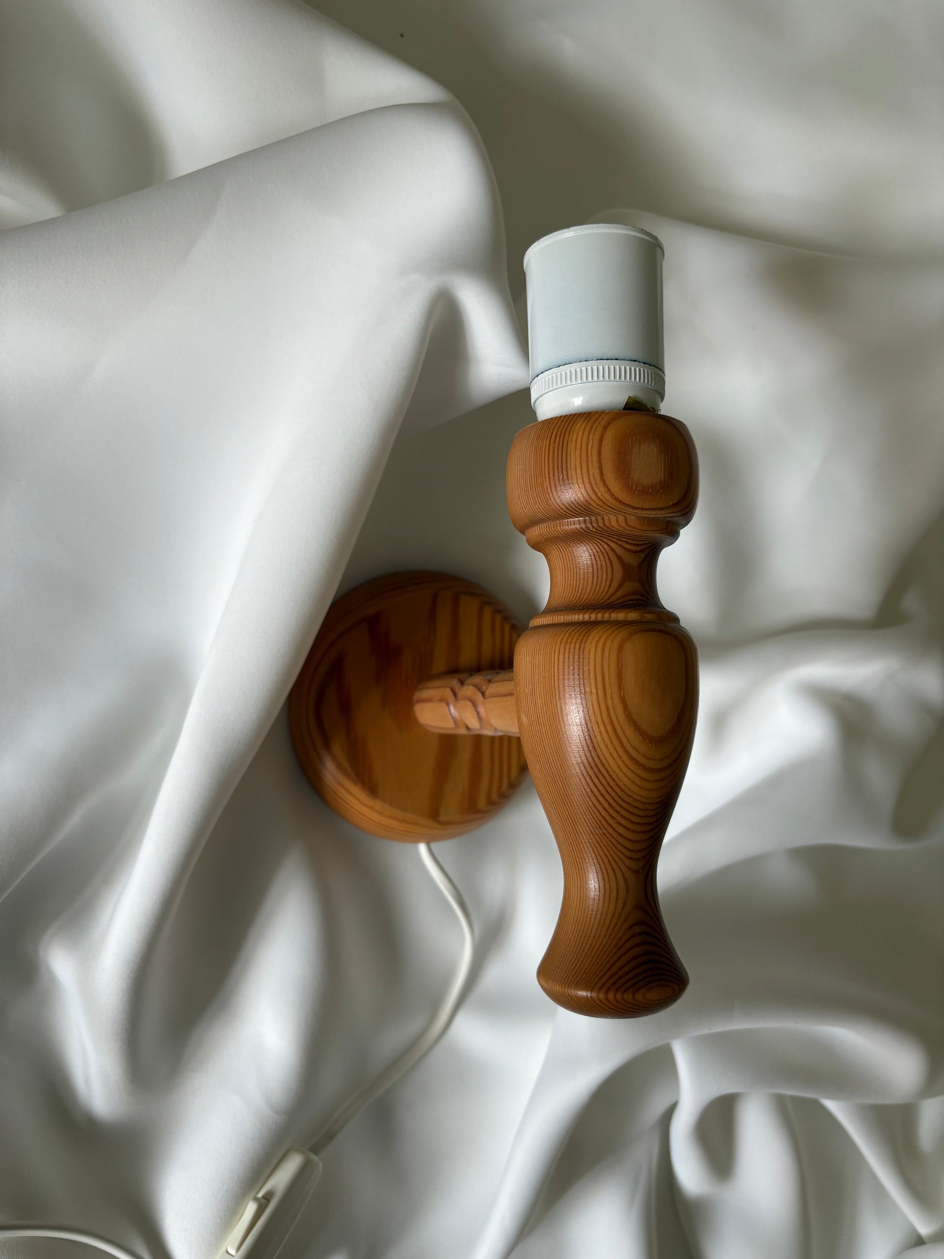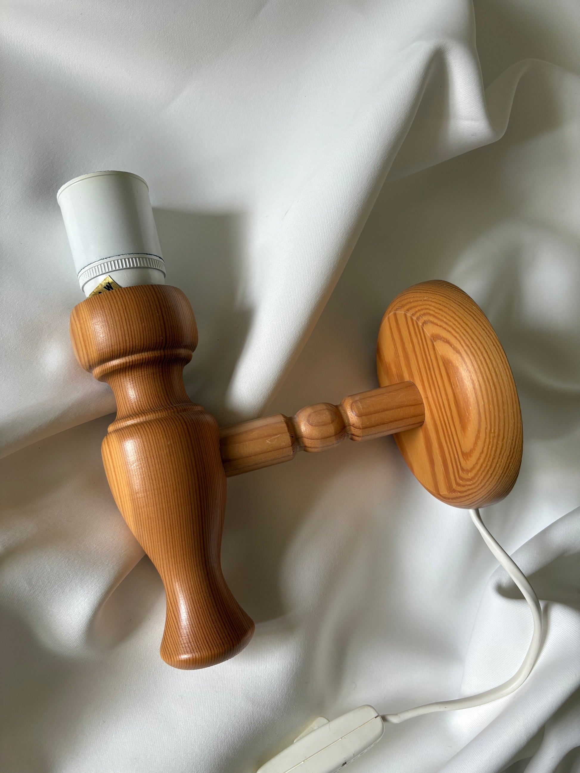 Vintage vegglampe i furu.🌲 En klassiker, spør du meg! Her sammen med en bølgeskjerm laget med overskuddstekstil fra Sandvika veveri! 🎪