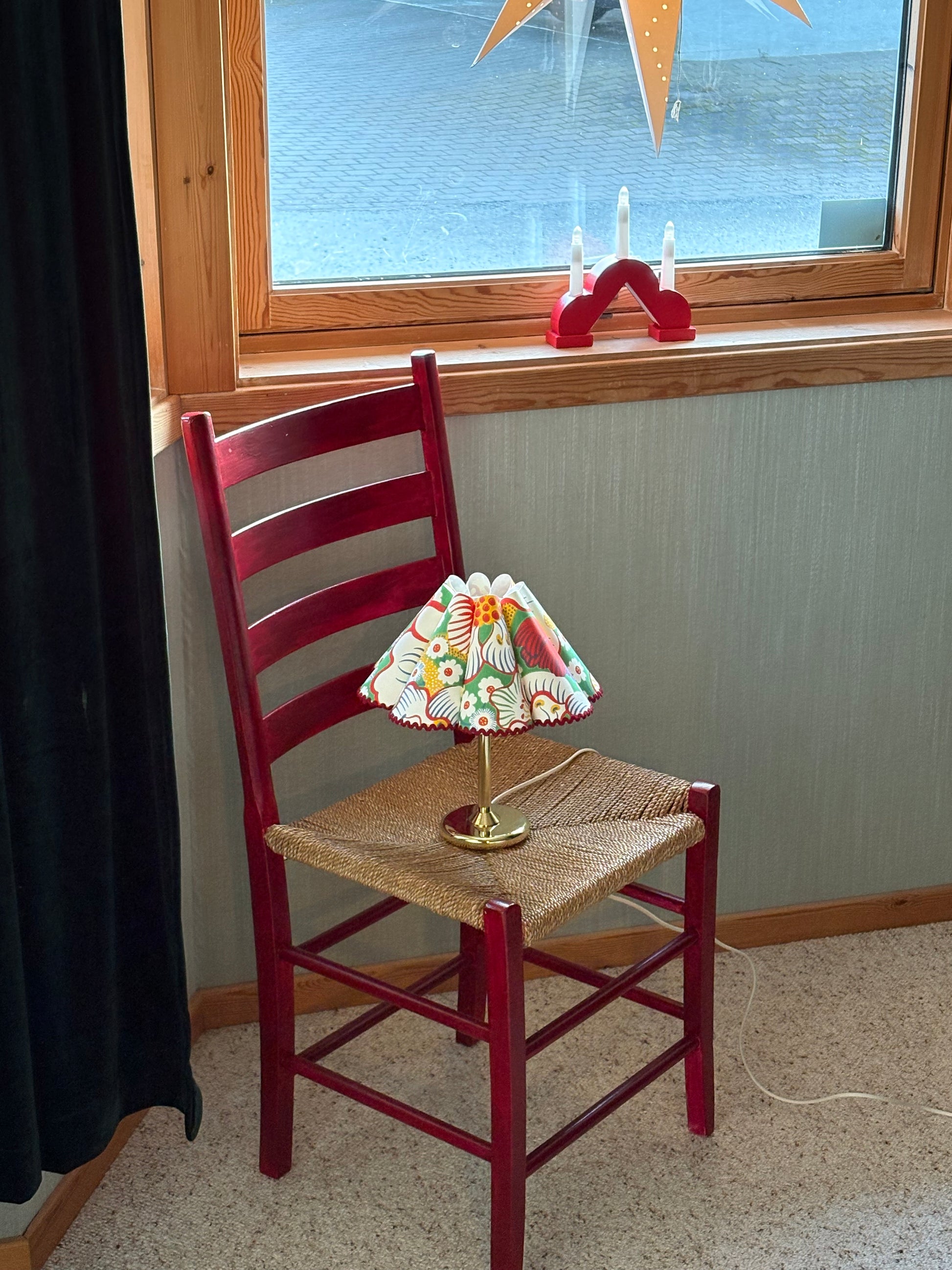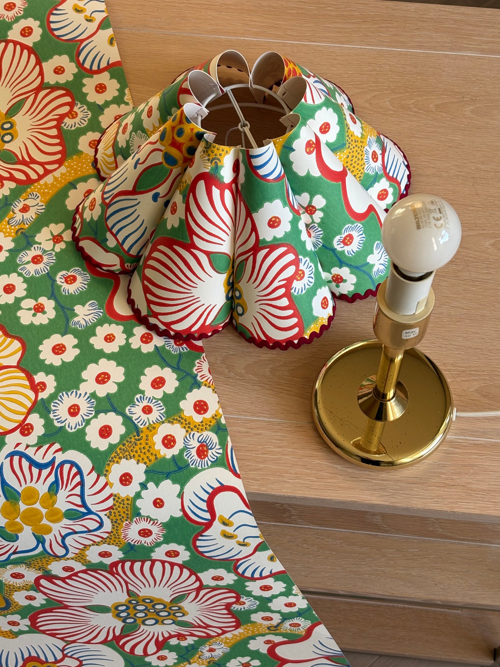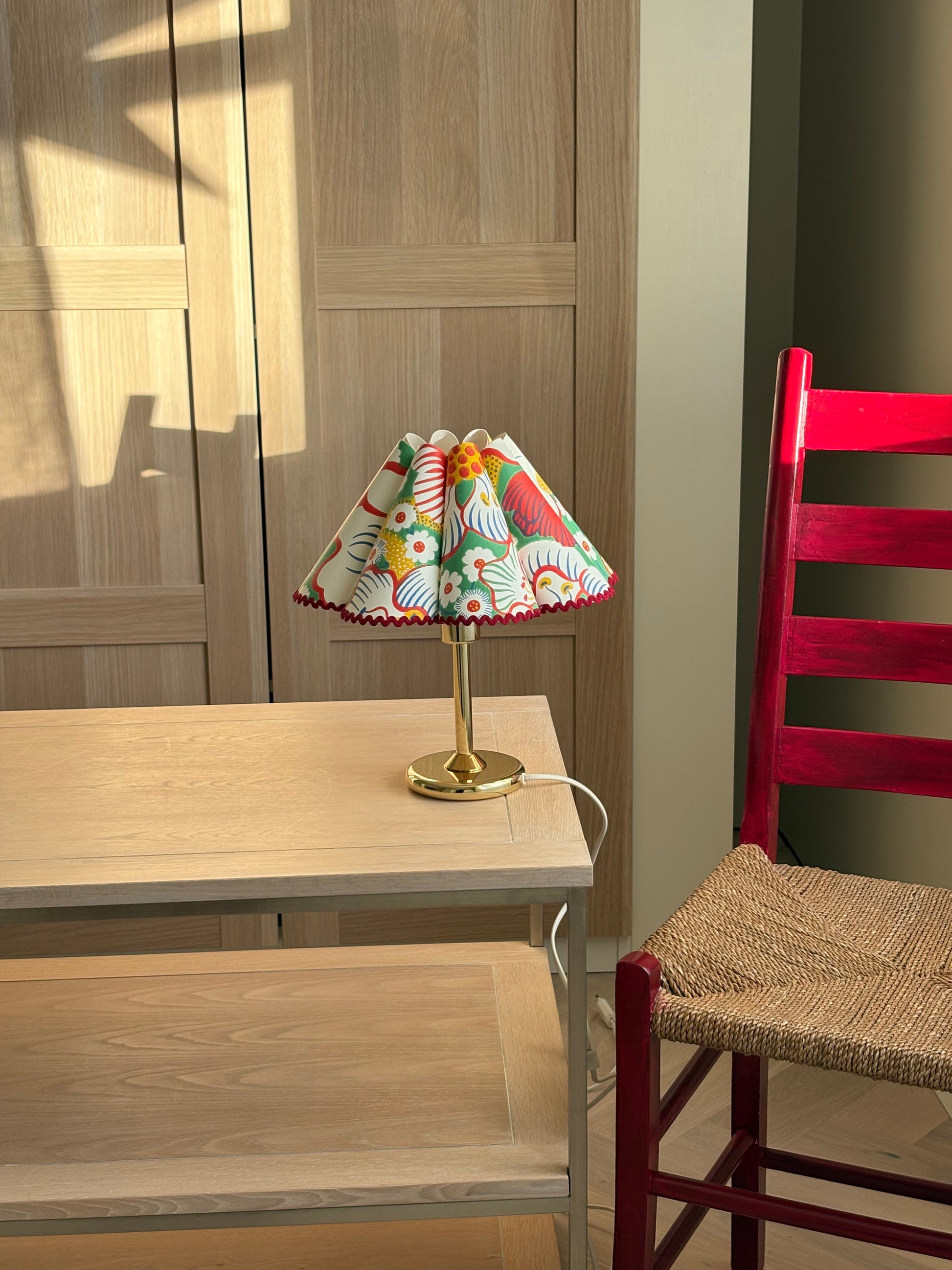 Lampeskjermen er laget med tapet fra Svenskt Tenn! 🕊️🌷 Stativet er fra en liten fabrikk i Danmark. <3