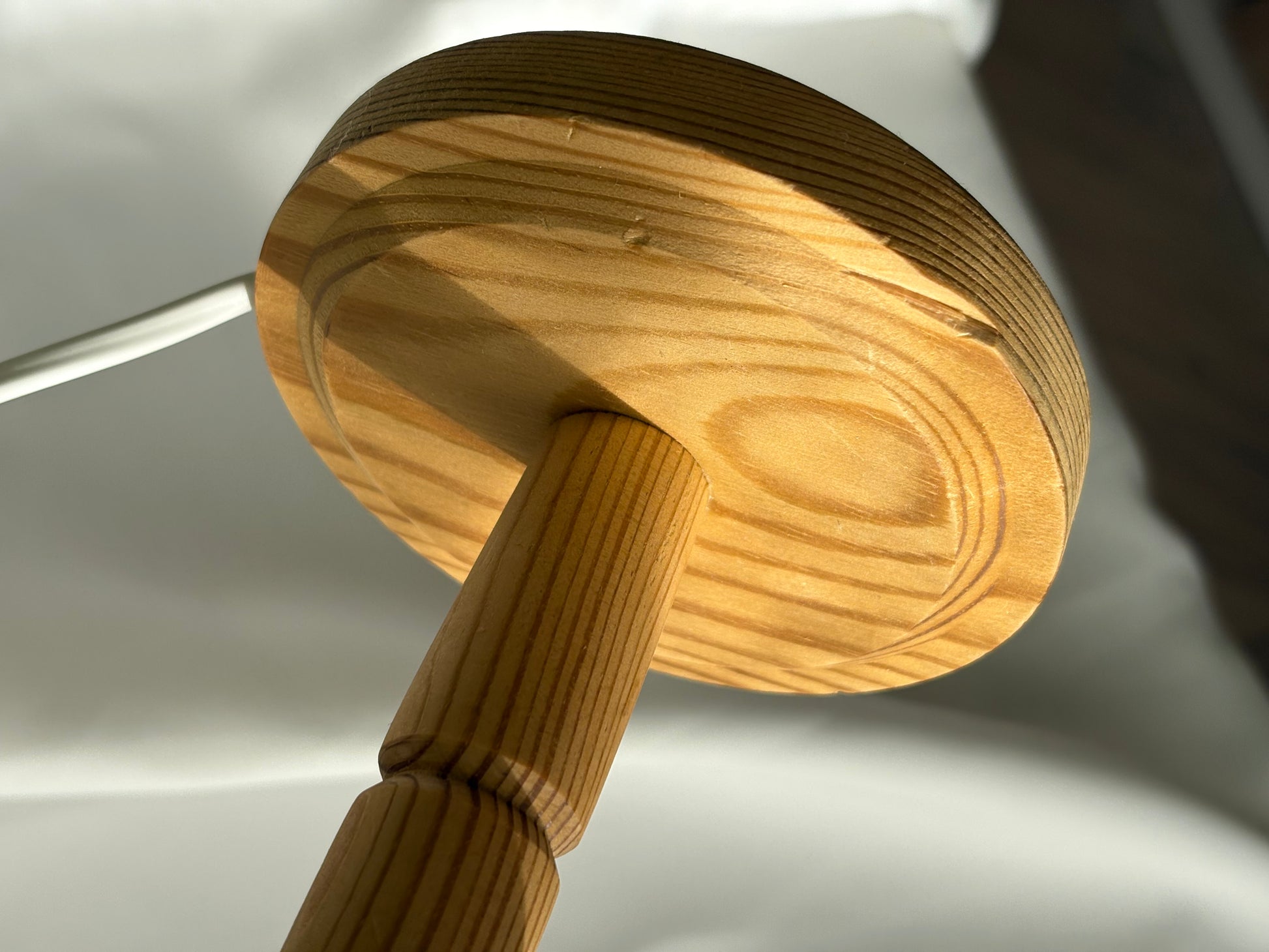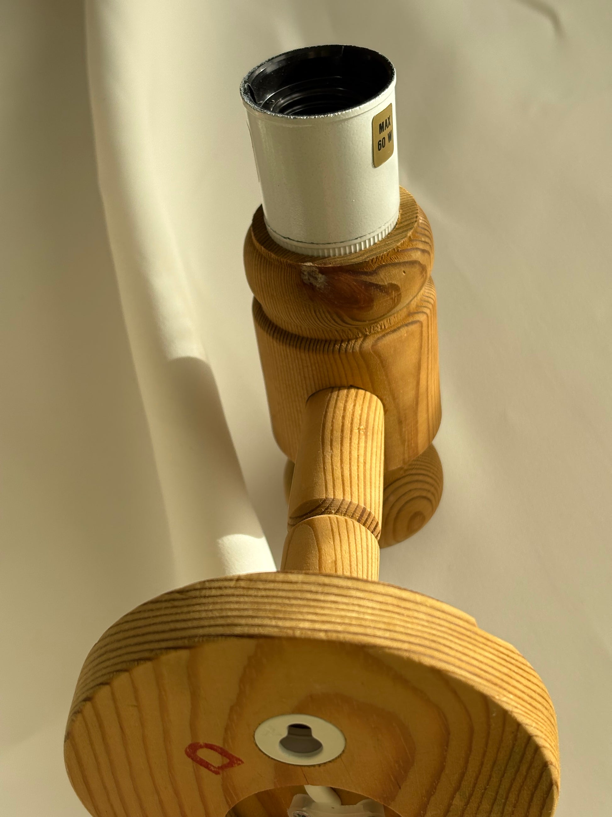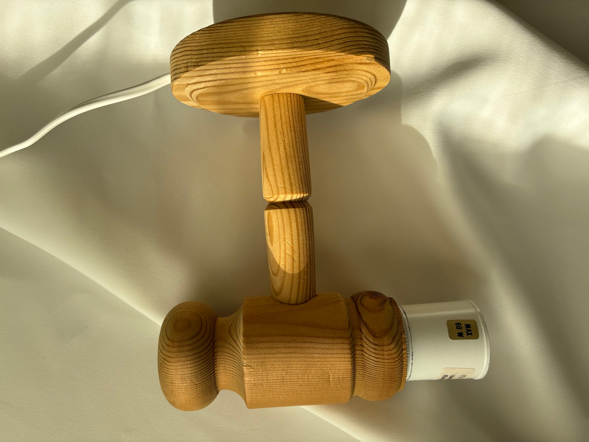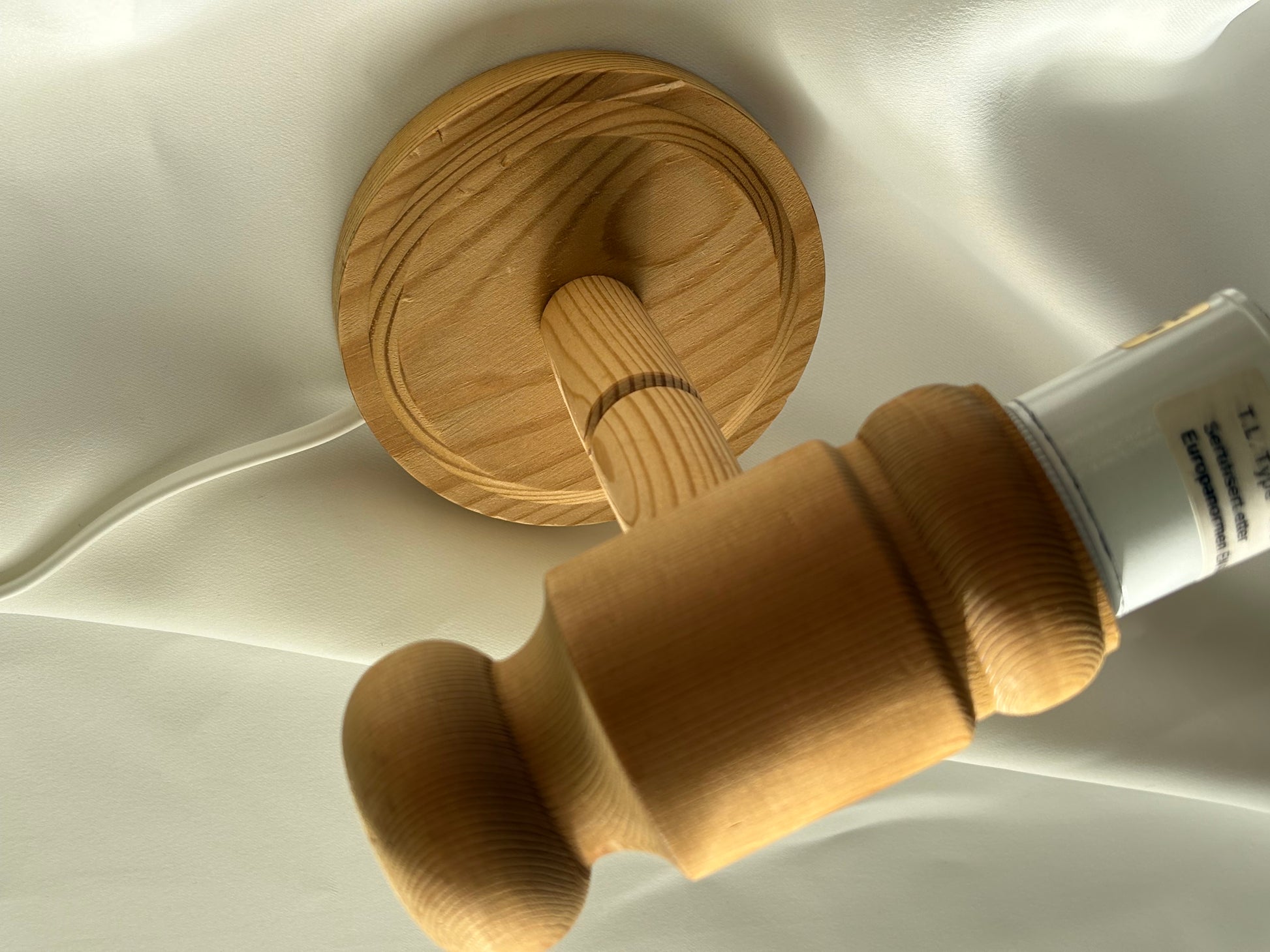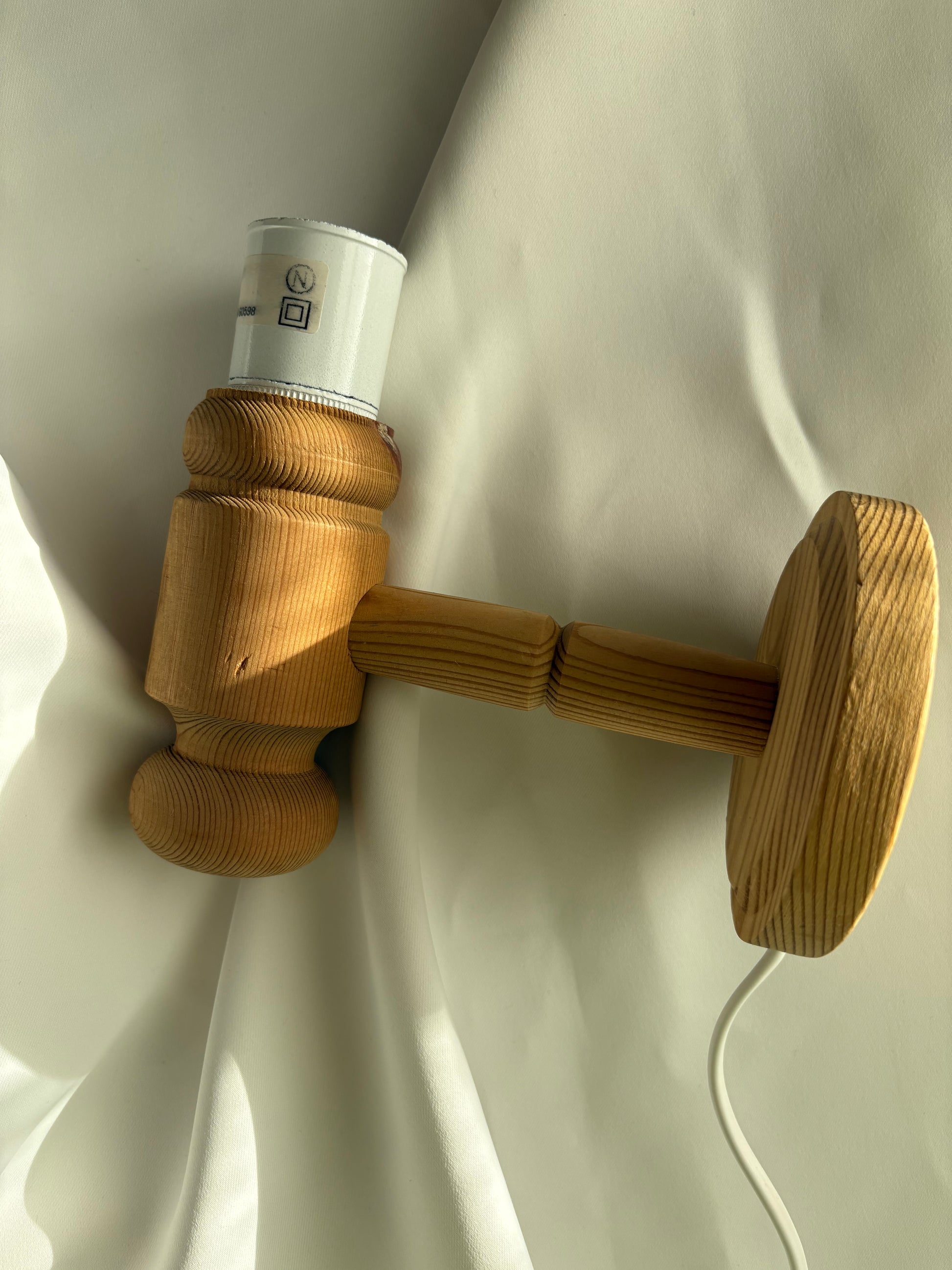 Herlig vintage vegglampe i ubehandlet furu. Med en omtrukket skjerm i Svenskt Tenn tapeten Paradiset.